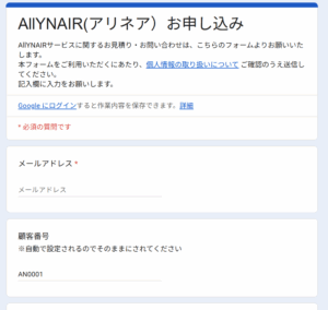 見積りした内容でAllynair(アリネア)を利用する場合は