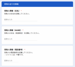 送り先(荷物受け取り人)の氏名や住所を入力します